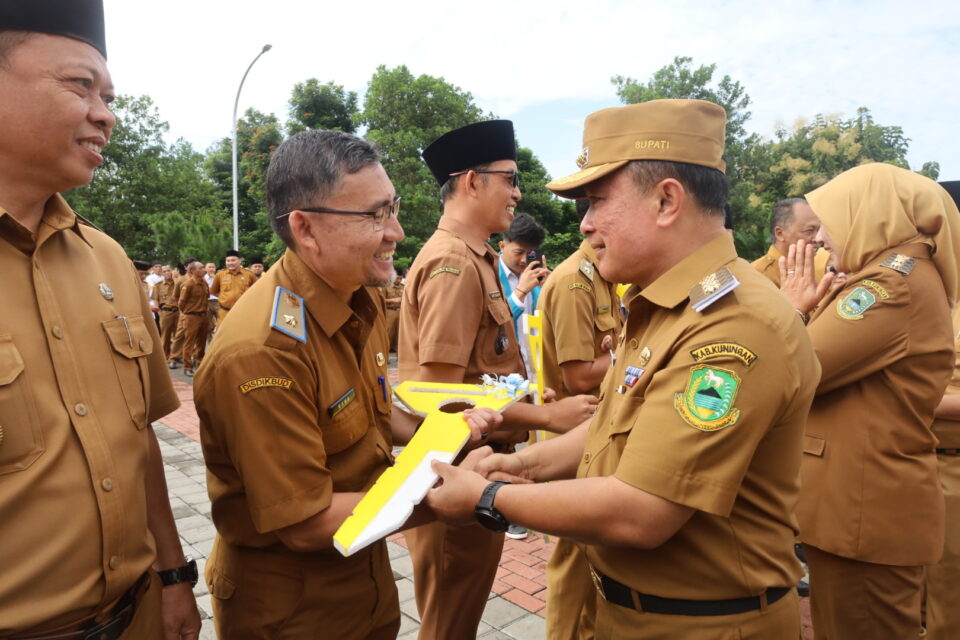 Penyerahan dilakukan langsung oleh Bupati Kuningan, Dr. H. Dian Rachmat Yanuar, M.Si, saat apel pagi di halaman Setda Kuningan, Senin (21/4/2025). Acara ini turut dihadiri oleh Wakil Bupati, para camat, lurah, kepala desa, serta jajaran perangkat daerah se-Kabupaten Kuningan.
