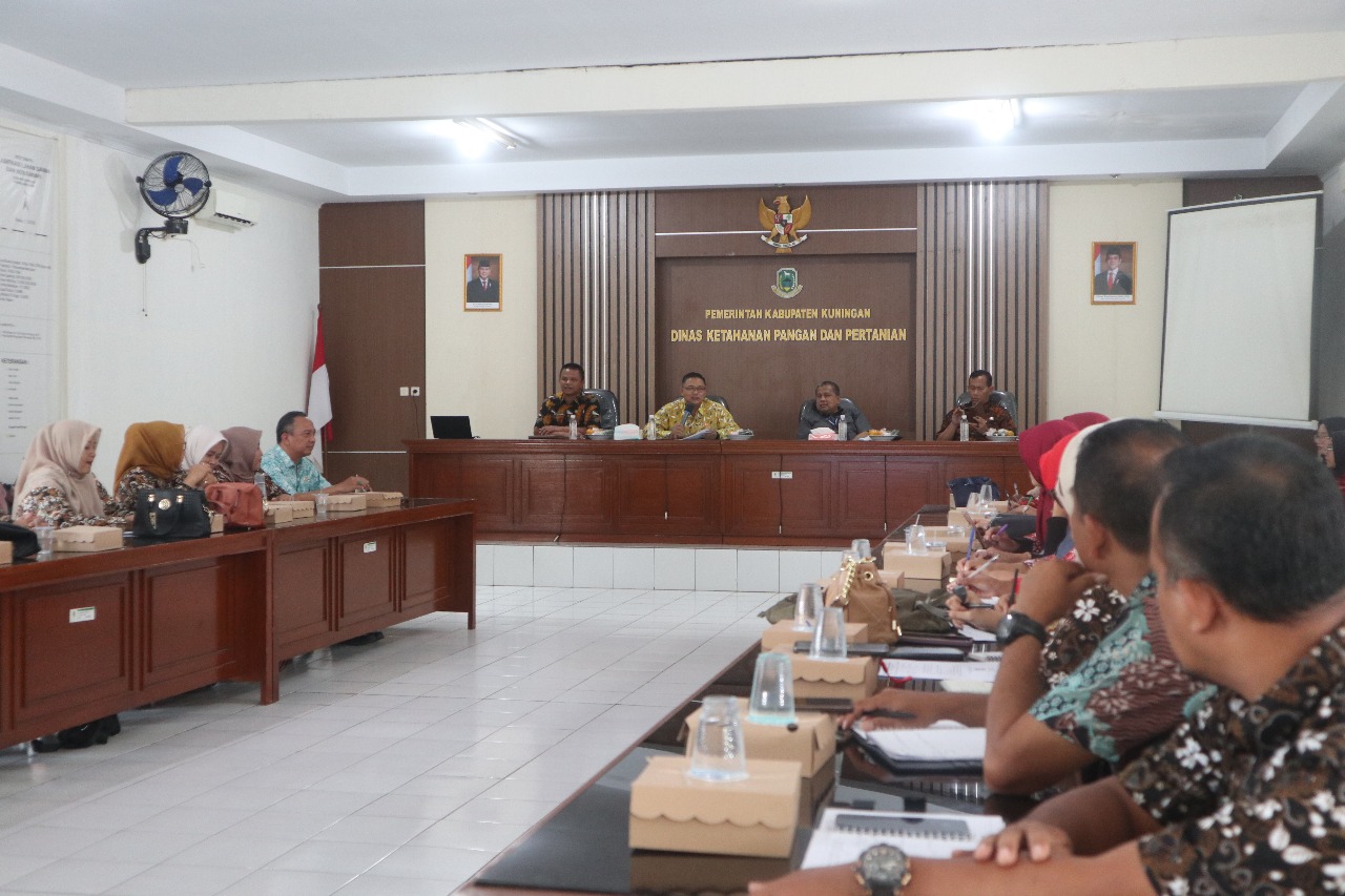 KUNINGAN – Dinas Ketahanan Pangan dan Pertanian Kabupaten Kuningan mengadakan rapat koordinasi guna memperkuat ketahanan pangan serta meningkatkan gizi masyarakat desa melalui program Beragam, Bergizi, Seimbang, dan Aman (B2SA). Rapat ini berlangsung di aula dinas pada Rabu (14/2) dan dihadiri berbagai pihak terkait.