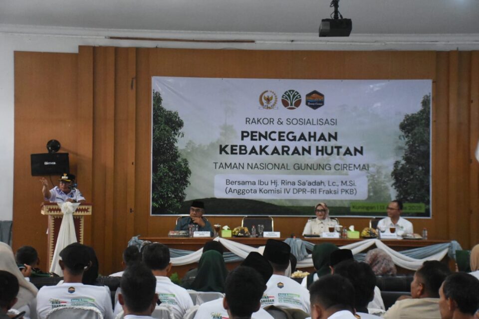 KUNINGAN – Balai Taman Nasional Gunung Ciremai (BTNGC) menggelar Rapat Koordinasi dan Sosialisasi Pencegahan Kebakaran Hutan di Auditorium Linggarjati, Rabu (13/8). Kegiatan ini dihadiri anggota Komisi IV DPR RI Fraksi PKB, Hj. Rina Sa’adah, Lc., M.Si., serta Bupati Kuningan, Dr. H. Dian Rachmat Yanuar, M.Si., yang menjadi salah satu narasumber.