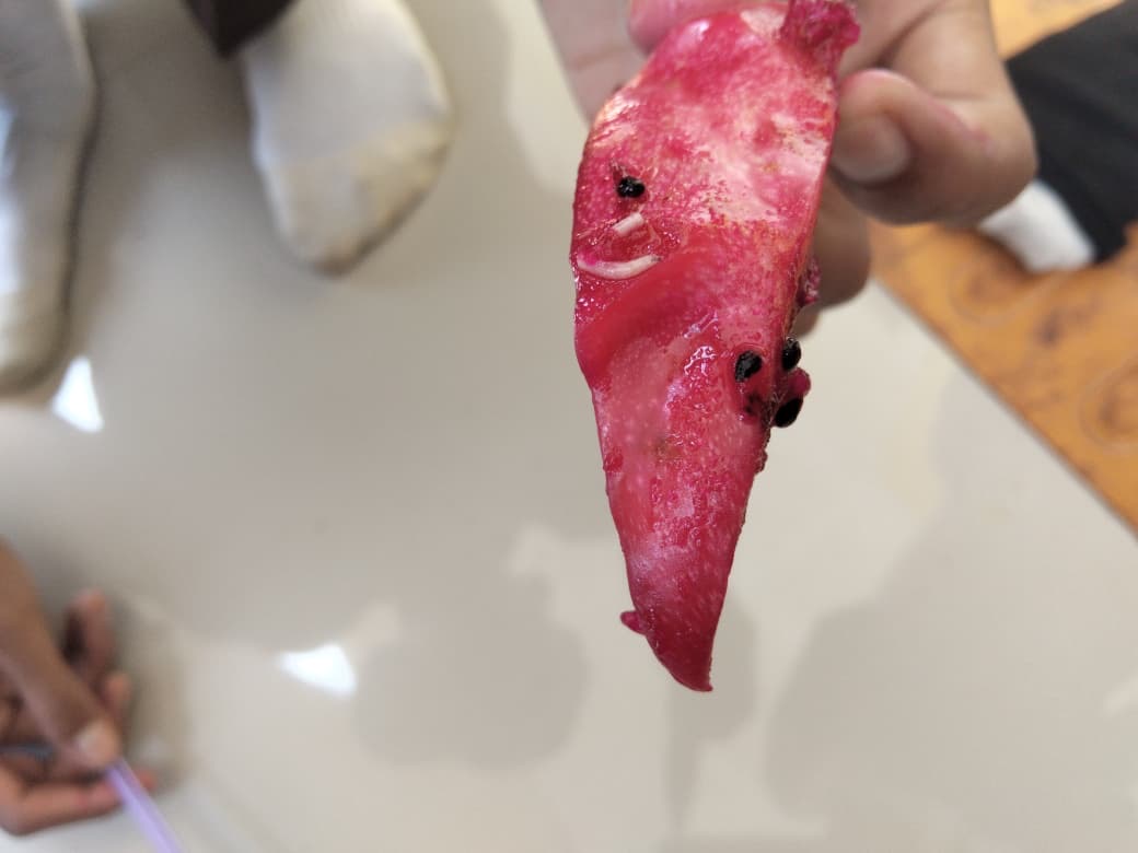 Salah seorang guru SMKN 1 Luragung, Cucu Supriadin, membenarkan adanya temuan itu saat dikonfirmasi, Selasa (14/4/2026). Menurutnya, ulat ditemukan ketika buah naga hendak dikonsumsi.