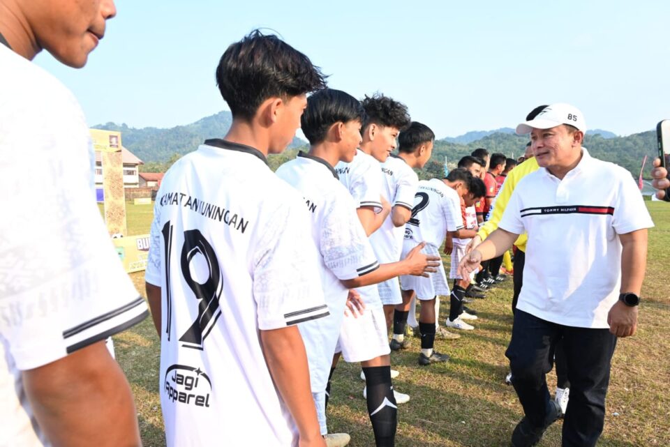KUNINGAN – Turnamen Sepak Bola Antar Kecamatan Bupati Cup 2025 resmi dibuka di Lapangan Putra Mayana, Desa/Kecamatan Kadugede, dengan semangat tinggi dan antusiasme masyarakat. Bupati Kuningan, Dr. H. Dian Rachmat Yanuar, M.Si., secara simbolis menendang bola pertama sebagai tanda dimulainya ajang olahraga bergengsi ini.