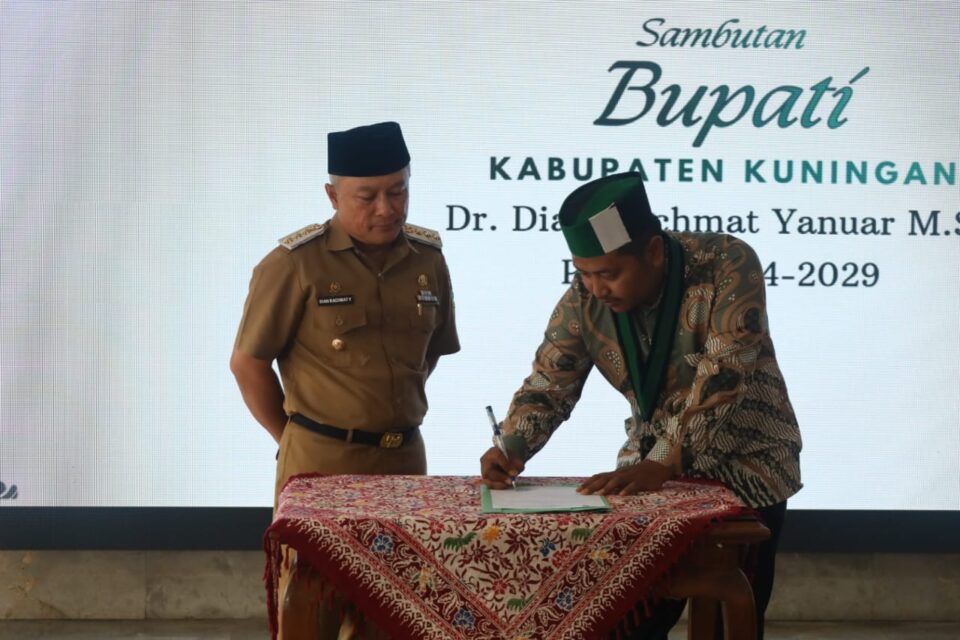 KUNINGAN— Bupati Kuningan Dr. H. Dian Rachmat Yanuar, M.Si., menghadiri pelantikan Pengurus Himpunan Mahasiswa Islam (HMI) dan Korps HMI-Wati (KOHATI) Cabang Kuningan Periode 2025–2026 yang digelar di Aula Pendopo Kabupaten Kuningan, Senin (5/1).