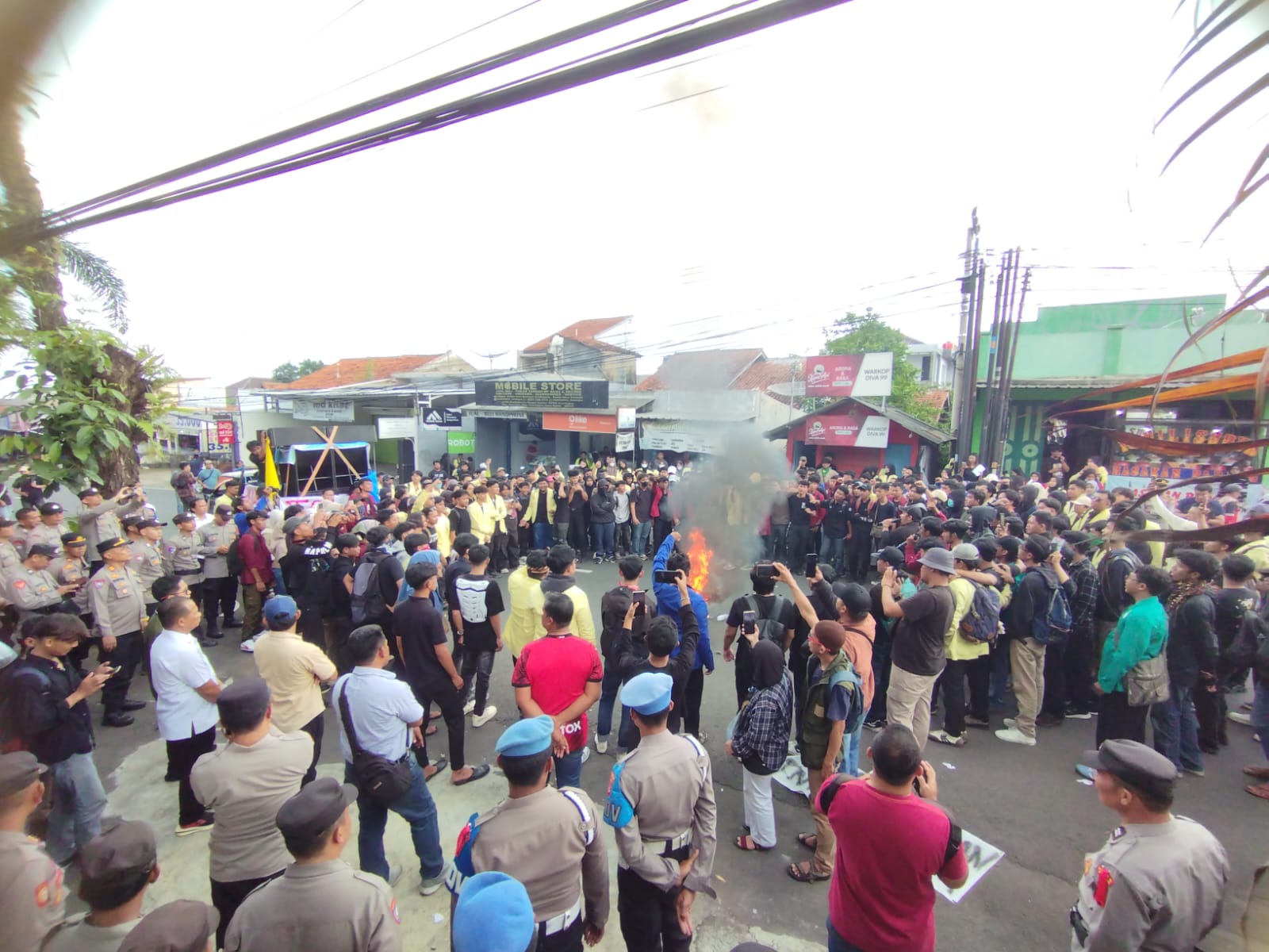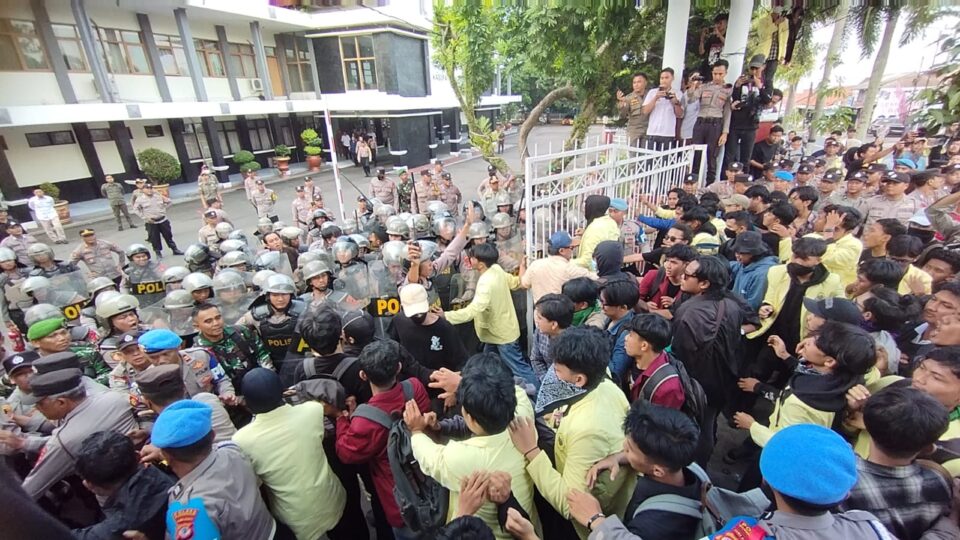 Aksi unjuk rasa itu sempat ricuh, usai ratusan mahasiswa memaksa masuk gedung dewan. Pintu gerbang yang tertutup sempat dijebol mahasiswa, namun polisi berhasil memukul mundur para pengunjuk rasa.