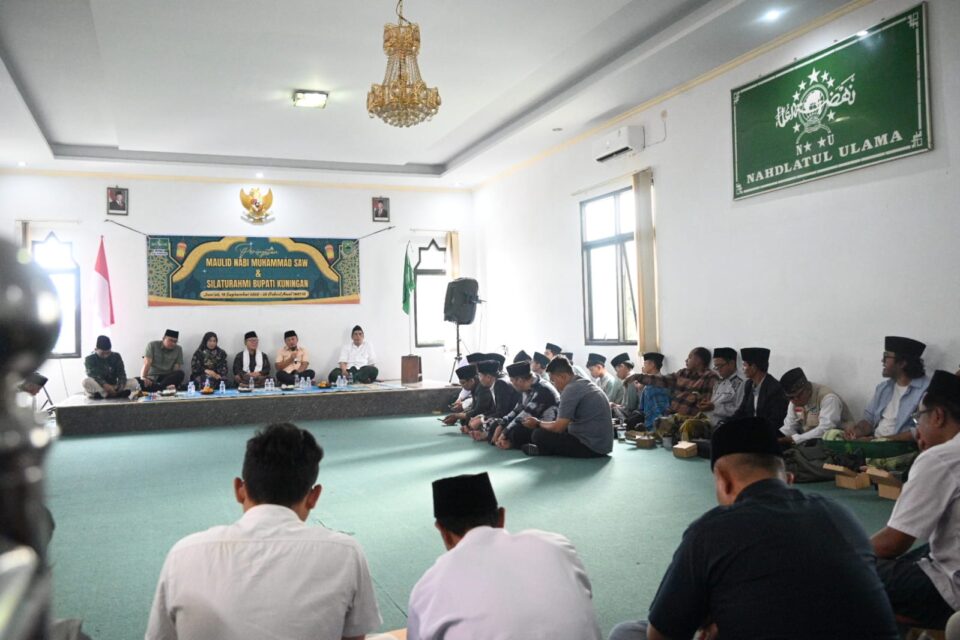 KUNINGAN – Peringatan Maulid Nabi Muhammad SAW 1447 H yang digelar Pengurus Cabang Nahdlatul Ulama (PCNU) Kabupaten Kuningan berlangsung khidmat dan penuh kehangatan di Gedung PCNU Kuningan. Lantunan sholawat menggema, menghadirkan suasana syahdu yang menambah kerinduan kepada Rasulullah sekaligus memperkokoh ikatan batin ulama dengan pemerintah daerah.