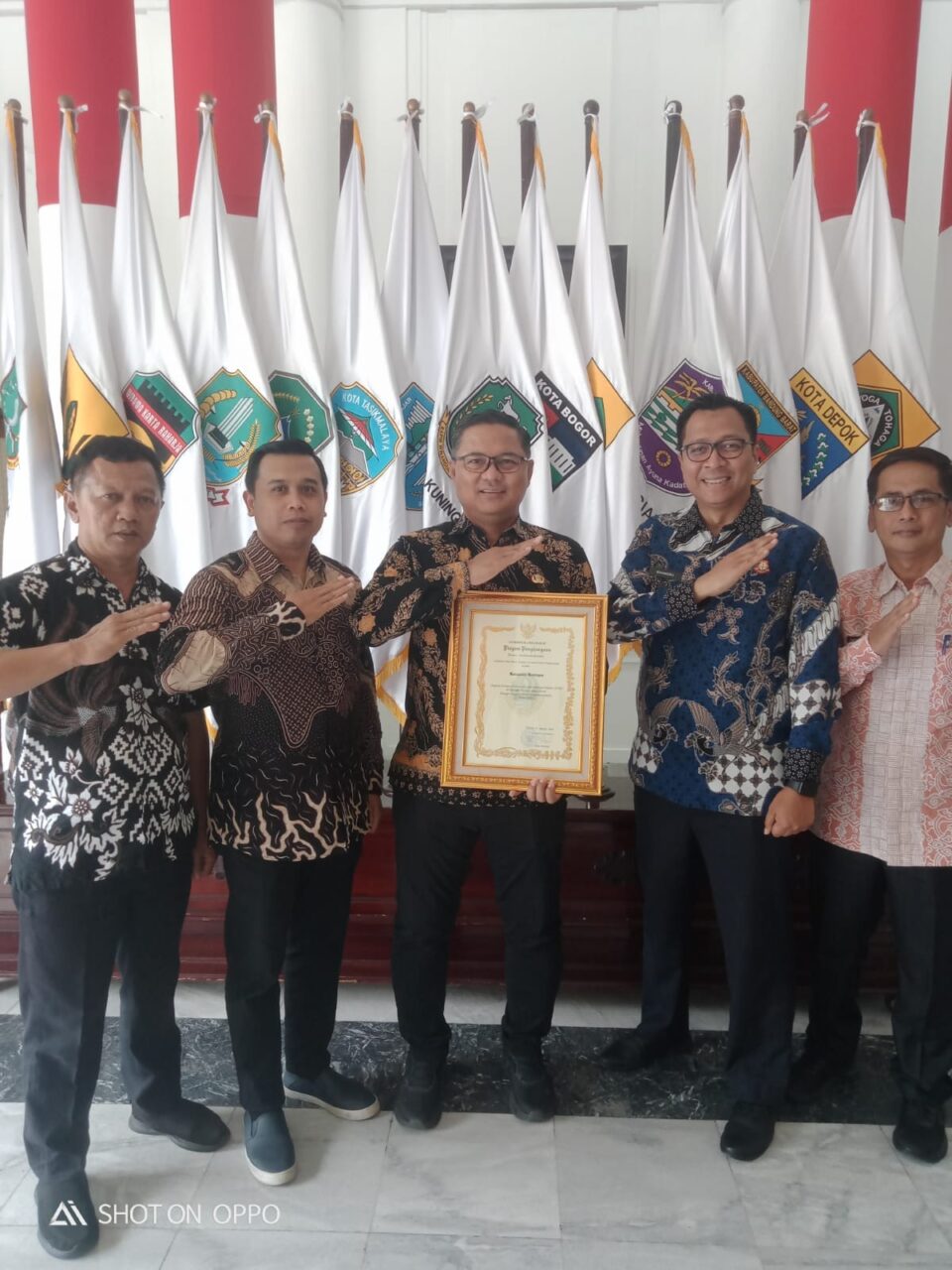 Penghargaan diserahkan Wakil Gubernur Jawa Barat, Erwan Setiawan, kepada Pj. Sekda Kuningan, Dr. Wahyu Hidayah, M.Si., yang hadir mewakili Bupati Kuningan, Dr. H. Dian Rachmat Yanuar, M.Si., Senin (29/9/2025). Turut mendampingi, Kepala Bagian Hukum Setda Kuningan, Mahardika Rahman, S.H., M.H.