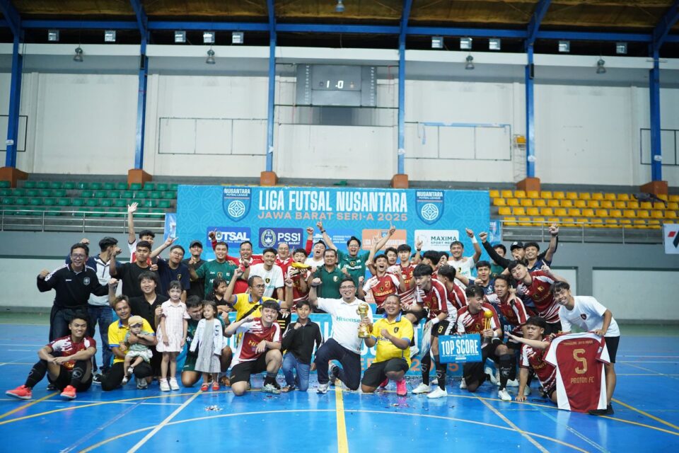 KUNINGANid– Proton FC Kuningan menorehkan bab baru dalam sejarah futsal Jawa Barat dengan menjuarai Liga Nusantara Seri A usai menaklukkan Startitas Kota Tasikmalaya 2-1 dalam laga final yang berlangsung sengit di Stadion SOR RAA Adiwijaya, Garut.