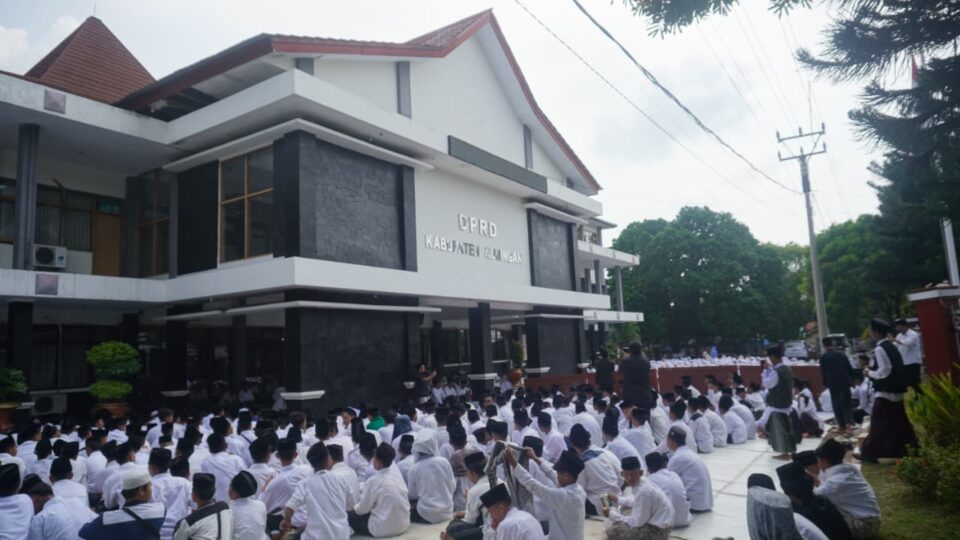 KUNINGAN – Ratusan santri dari berbagai pondok pesantren di Kabupaten Kuningan menggelar Istighosah Santri 2025 di halaman Gedung DPRD Kabupaten Kuningan, Senin (20/10/2025).