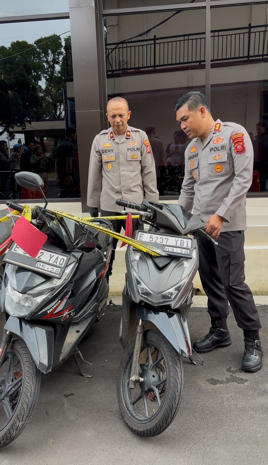Kapolres Kuningan AKBP M Ali Akbar mengatakan, barang bukti yang berhasil diamankan antara lain, 1 unit sepeda motor Yamaha Vixion merah (E-4591-BK), 1 unit sepeda motor Honda Beat hitam (E-3392-YAQ), 1 buah tas warna cokelat, 1 unit handphone iPhone XR warna hitam, 1 buah dompet warna hitam