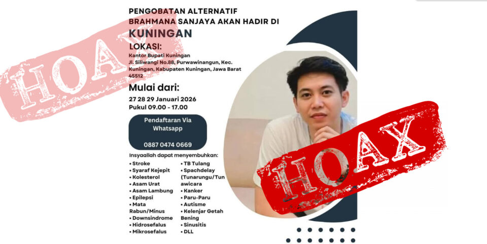 KUNINGAN — Informasi mengenai rencana kegiatan Pengobatan Alternatif Brahmana Sanjaya yang diklaim akan digelar di Kantor Bupati Kuningan pada 27–29 Januari 2026 dipastikan sebagai informasi palsu dan bermuatan penipuan. Pemerintah Kabupaten Kuningan menegaskan tidak pernah memberikan izin maupun memfasilitasi kegiatan tersebut.